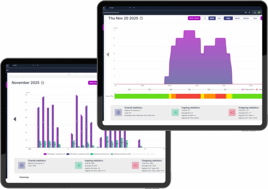 With this setup, you receive real-time visitor data instantly, providing insights that truly make an impact. From occupancy monitoring to cross- location comparisons, your data becomes ready to use, without additional configuration.